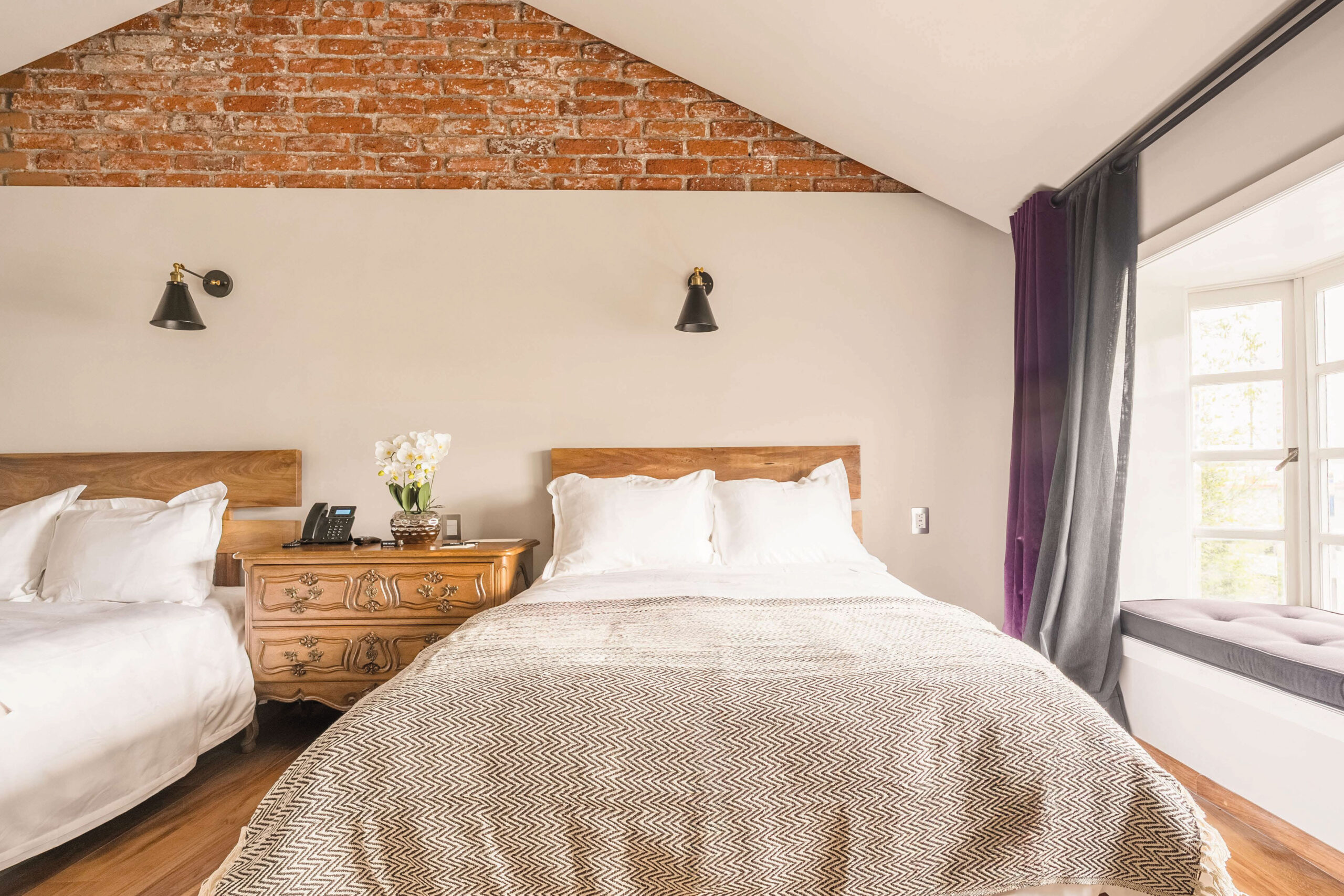 With only 12 thoughtfully designed suites, we combine the comfort of a home with the service and attention of a high-end hotel. Here, business meets personal: high ceilings, exposed brick walls, private terraces, lofts in select rooms, and shared areas made for relaxing or working at your own pace.